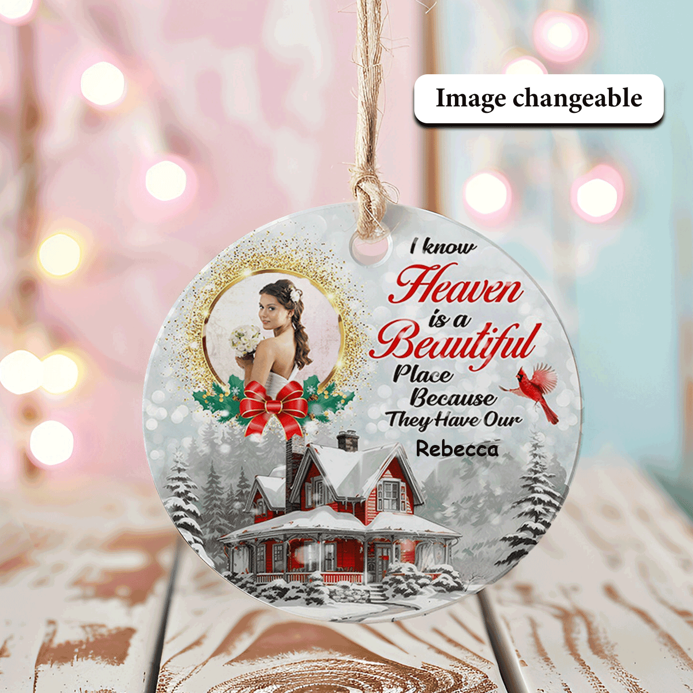 Christmas Memorial with Cardinal and Winter | Heaven is a Beautiful Place | Ceramic Ornament - Circle / 3.25in