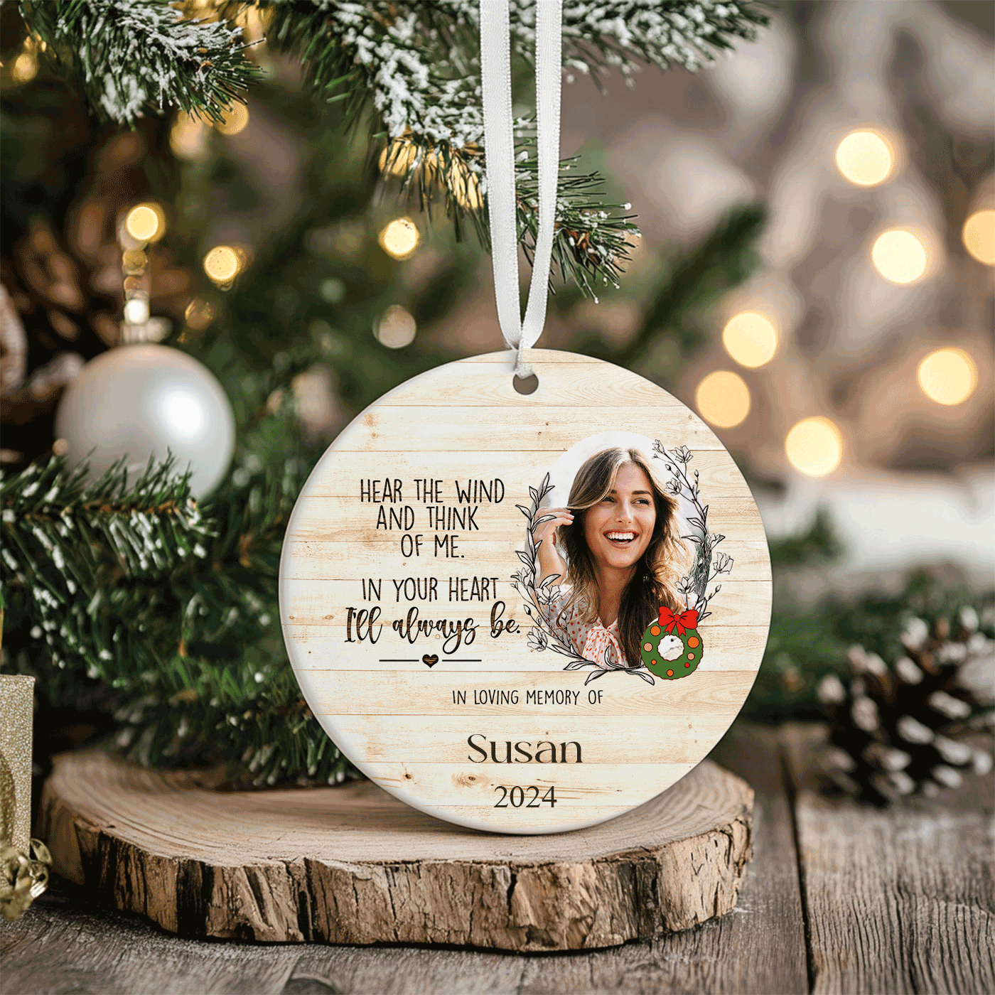 Hear the Wind and Think of Me | Heartfelt Christmas Remembrance | Ceramic Ornament - Circle / 3.25in