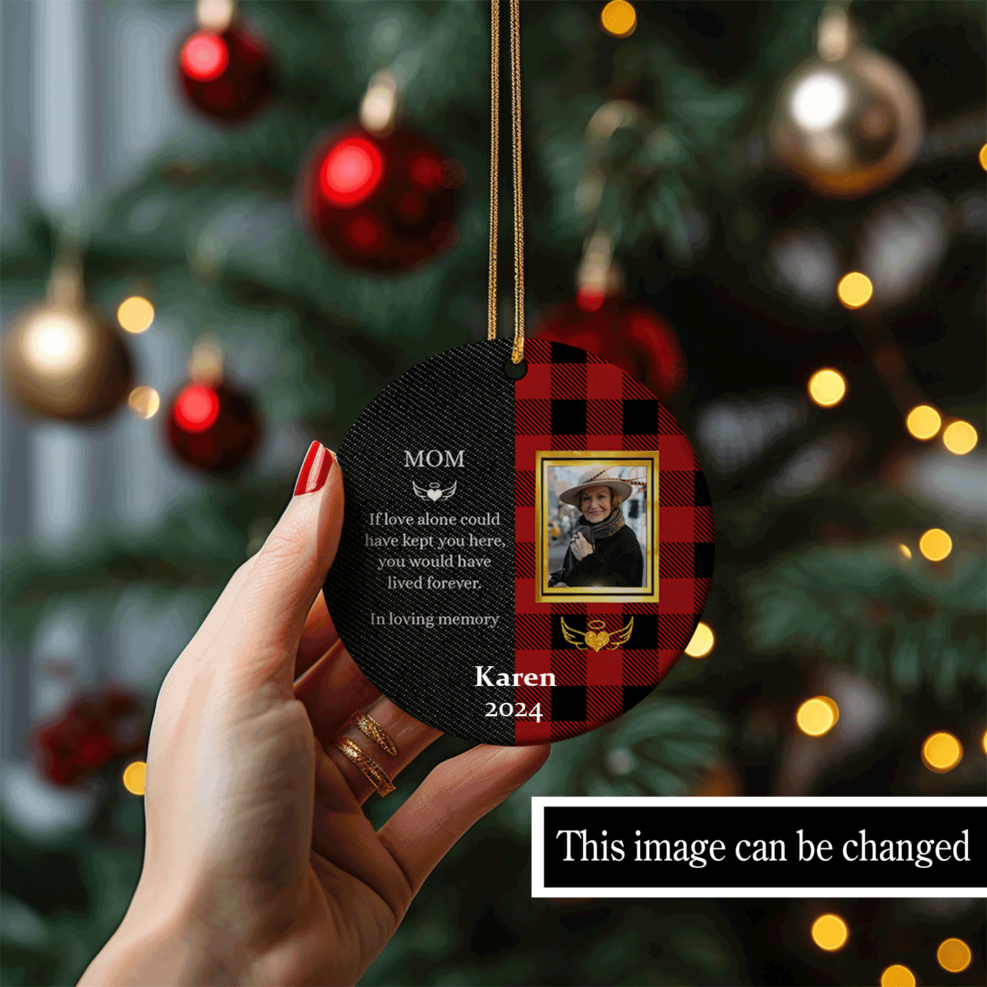 Plaid Memorial for Mom | "If Love Alone Could Have Kept You Here" | Christmas | Ceramic Ornament - Circle / 3.25in