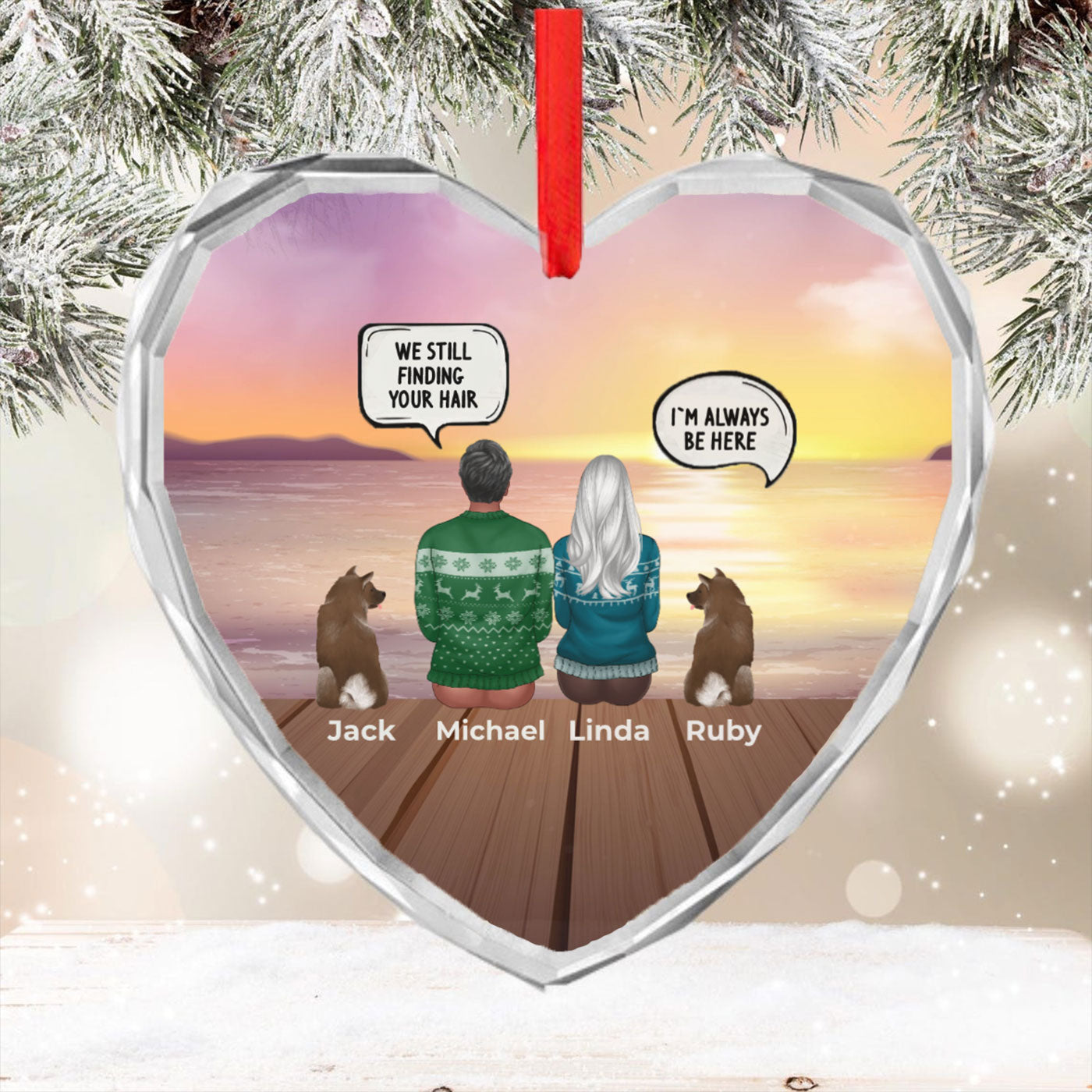 Customizable Family and Pet Sunset Memorial Ornament | Christmas | Heart Glass Ornament - Heart / 3.10 x 2.90 in