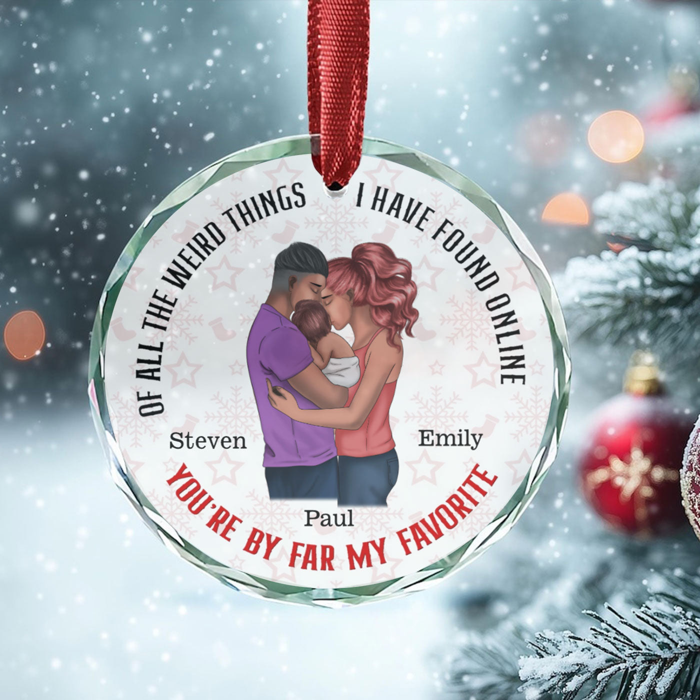 Family of Three Christmas Ornament | You're by Far My Favorite | Personalized Circle Glass Ornament - Round / 3in