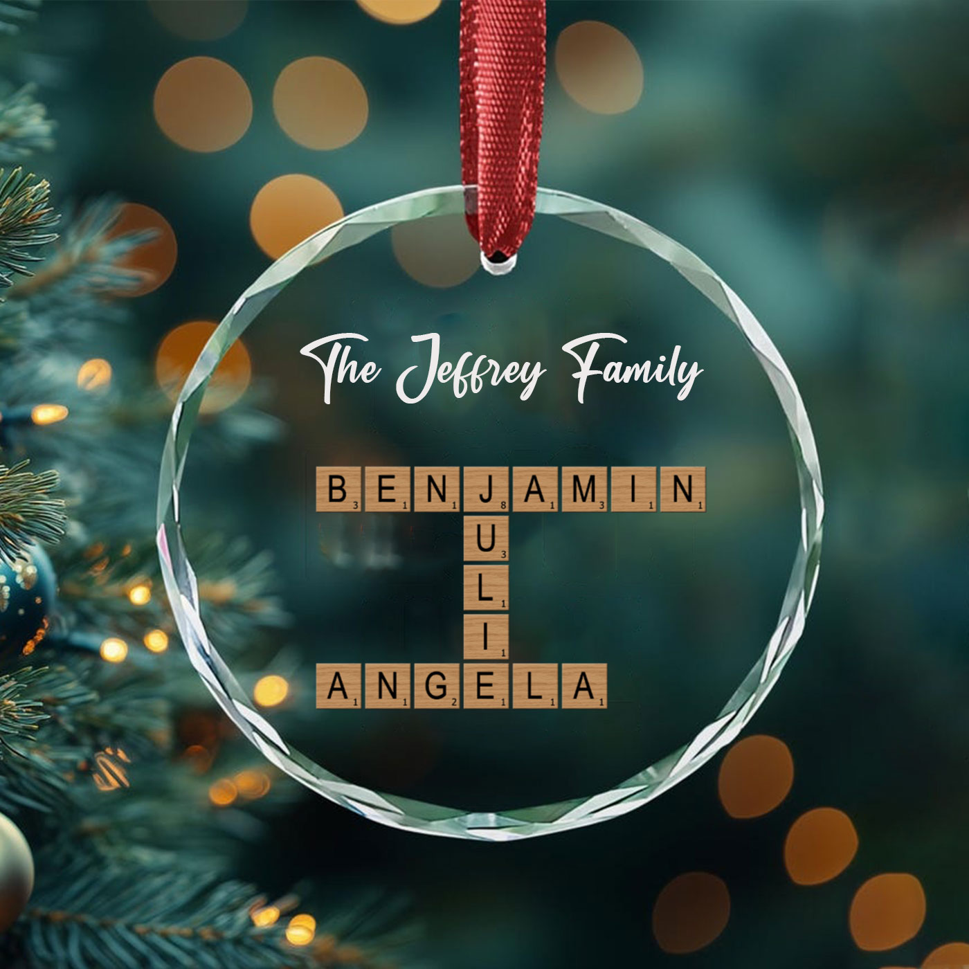 Personalized Crystal Glass Christmas Ornament - Custom Family Crossword Puzzle - Round / One size