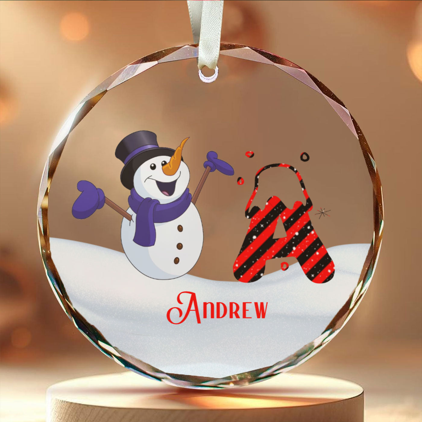 Personalized Namesake Christmas Crystal Glass Ornament | Snowman and Initial Design - Round / One size
